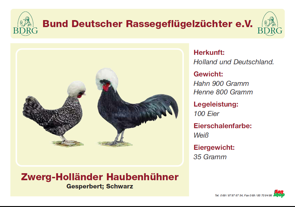 Zwerg-Holländer Haubenhühner weißhaube gerstruppt