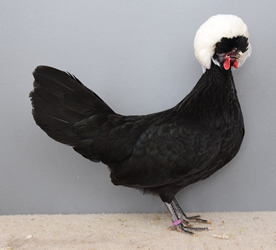 Zwerg-Holländer Haubenhühner Weißhauben schwarz
