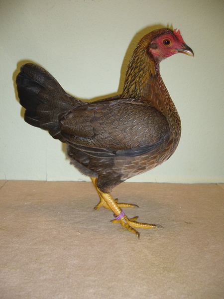 Altenglischer Zwergkämpfer rotgesattelt
